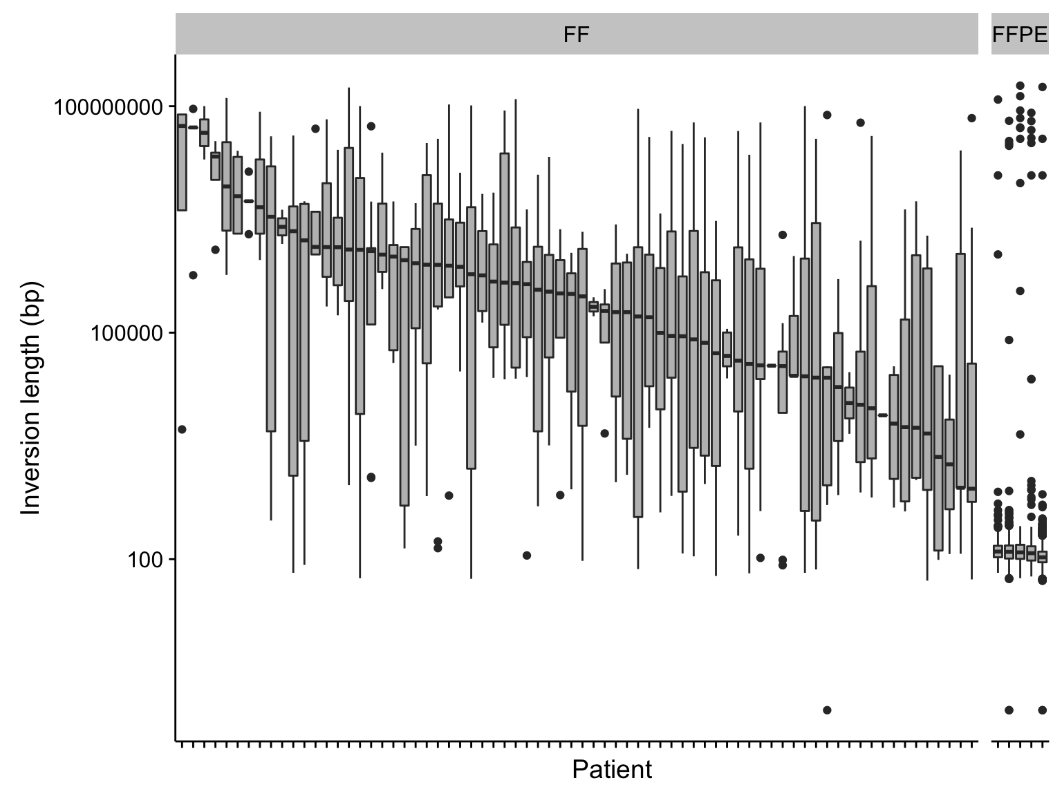 labs(x = "Patient", y = "Inversion length (bp)")