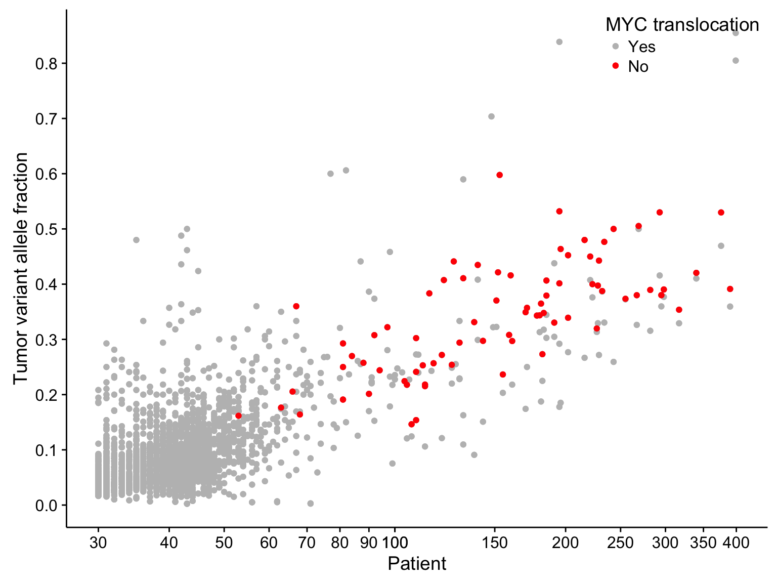 labs(x = "Patient", y = "Tumor variant allele fraction", colour = "MYC translocation")}